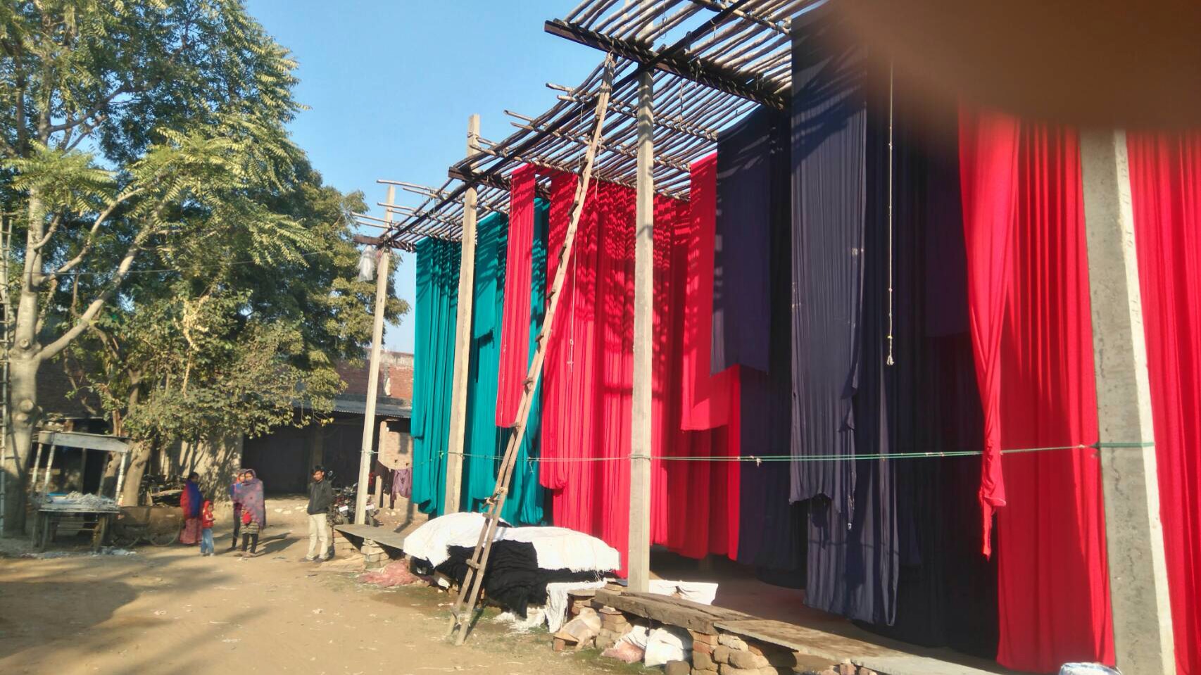サンガネールの町に入ると 染物を干している光景があちこちに。 カラフルできれいですよ。