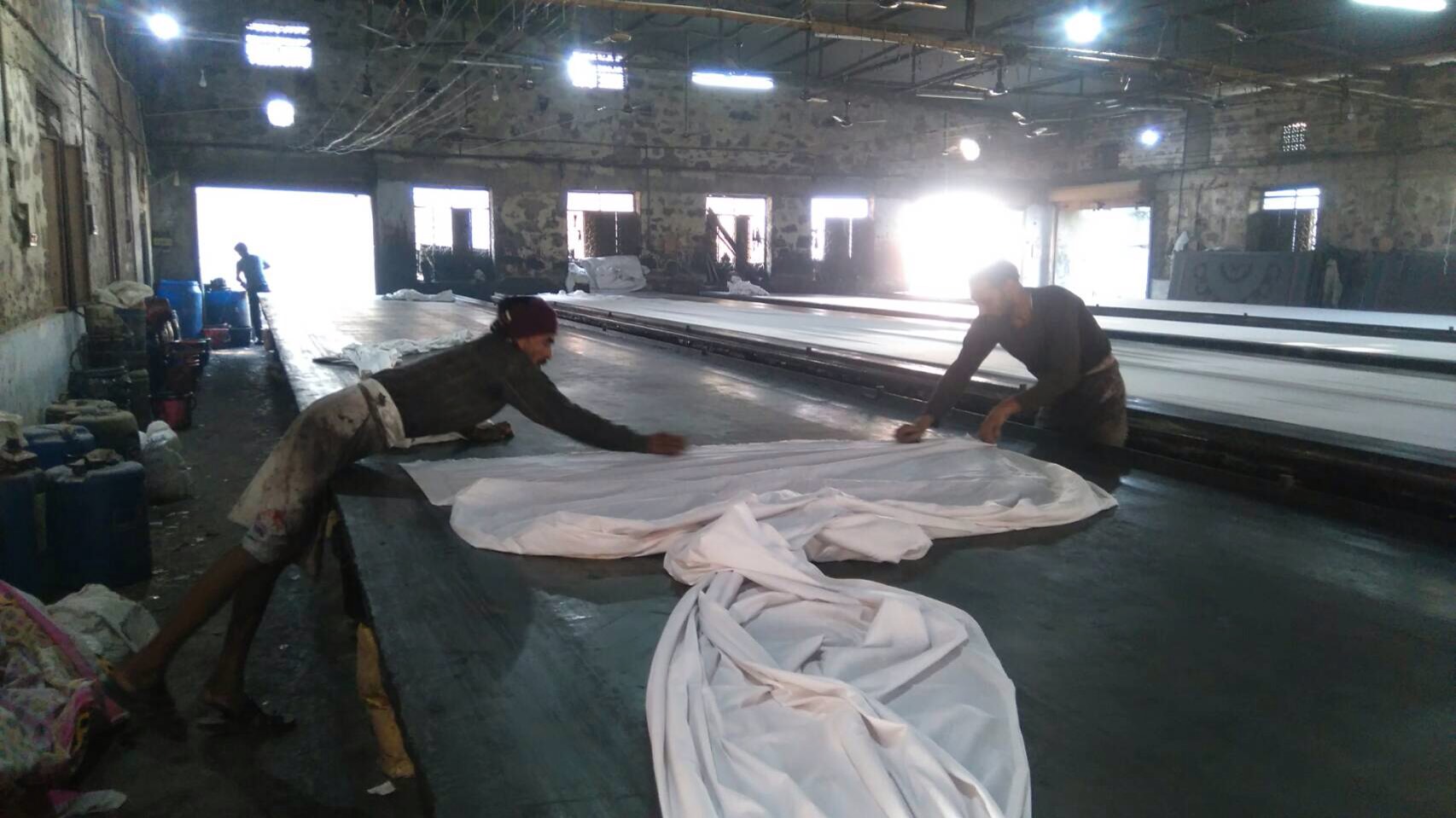 凄くいい色でした。上に器用に登って生地均等になるよう動かして いるスタッフがいました。