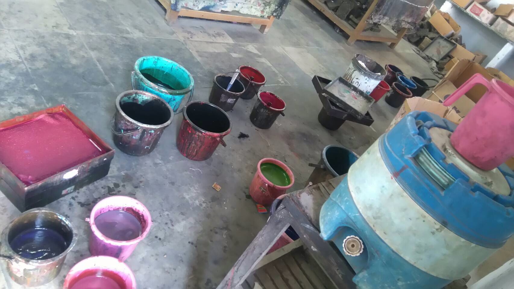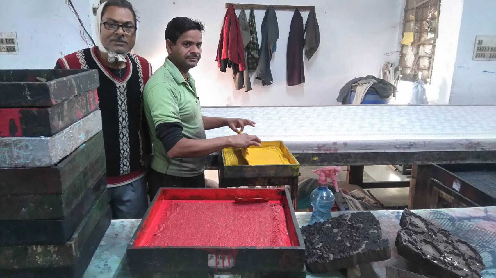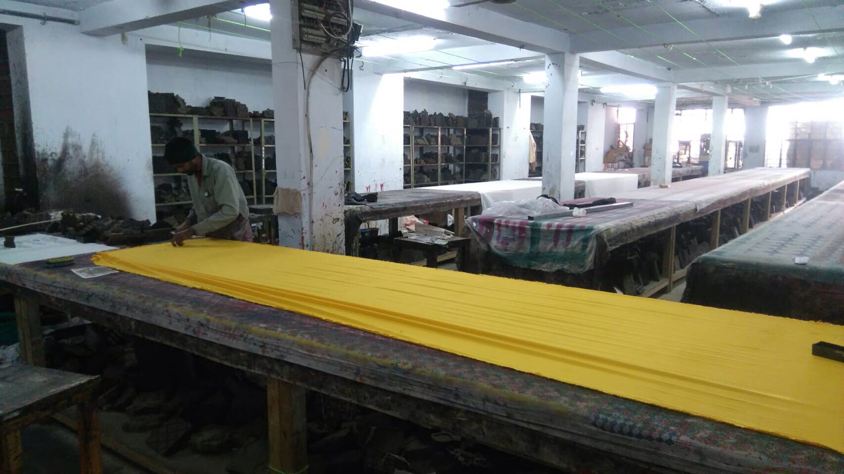 これから 木版(ブロックプリント)始めるそうです。 見るの楽しみです!邪魔せず’静かに拝見します。 インドなのに工場内は静かなんです。