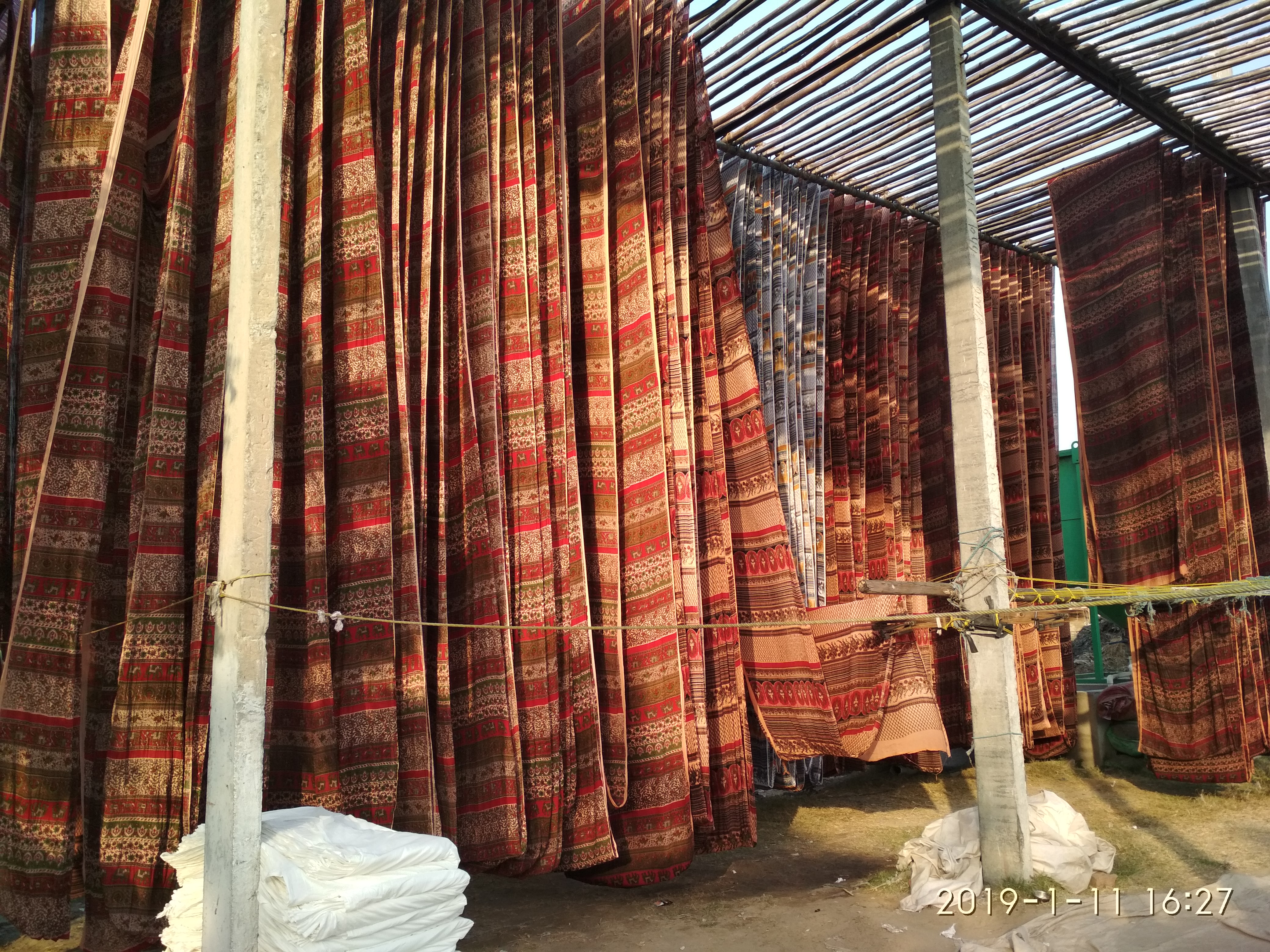 ブロックプリント用に敷かれた布